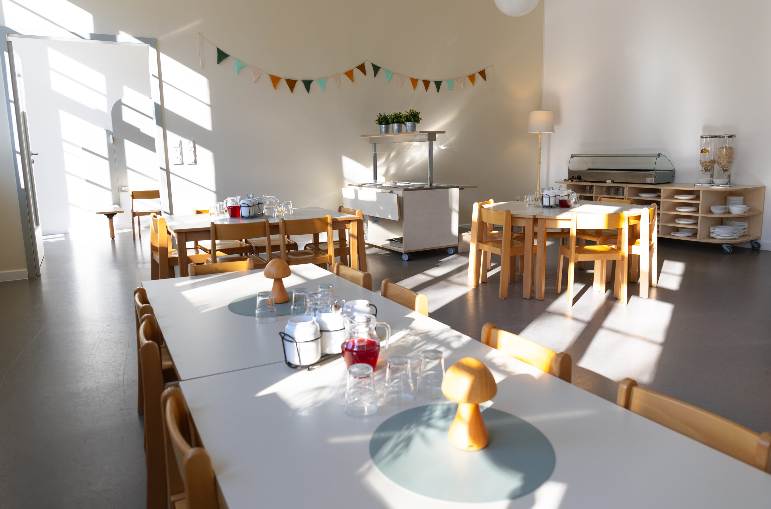 Wir bieten den Kindern in unserer Mensa in der Zeit von 8:00 Uhr bis 10:30 Uhr ein liebevoll gestaltetes Frühstücksbuffet an. Selbstbestimmt suchen sie sich ihr Frühstück und ihren Sitzplatz aus.